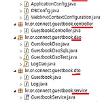 Service package kr.or.connect.guestbook.service; public interface GuestbookService { public static final Integer LIMIT = 5; public List getGuestbooks(Integer start); public int deleteGuestbook(Long id, String ip); public Guestbook addGuestbook(Guestbook guestbook, String ip); public int getCount(); } interface로 필요한 상수와 메소드를 선언하고, GuestbookServiceImpl에서 구현 package kr.or.connect.guestbook.service...